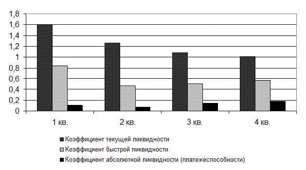 Анализ отдачи от основных средств показывает, что фондоотдача за три последних квартала изменялась не сильно – это означает, что поступление основных средств приносят примерно пропорциональный доход.