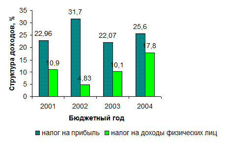 Уход от решения задачи самостоятельности бюджетов субъектов РФ подтверждается практикой последних лет в отношении изменений налогового законодательства в период с 2000 по 2004 гг., которое достаточно серьезно отразилось на формировании доходов регионального бюджета, в целом, а также и на местных бюджетах.