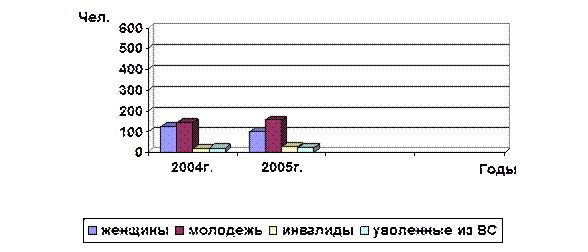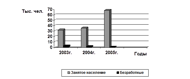 По данным Федеральной службы по труду и занятости на 01.01.2006г. на учете в органах государственной службы занятости состояло 0,5 млн. безработных, в том числе в Чеченской Республике – 334,6 тыс. чел. По сравнению с 2004г. численность зарегистрированных безработных сократилась на 101 тыс. чел., или на 5,5%. На 01.01.2006г. общая