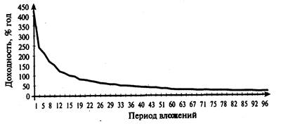 Актуальной является задача повышения эффективности рынка. Решение данной задачи основано на применение методов статистической проверки, лежащей в основе понятия «эффективный рынок» по реальным статистическим данным. Основной характеристикой эффективности операций на рынке государственных ценных бумаг является доходность. В практической деятельности возникает потребность установить финансовую эффективность, что сводится к определению доходности государственных ценных бумаг. В общем виде доходность является относительным показателем и представляет собой доход, приходящийся на единицу затрат. Под доходностью понимают величину дохода от вложения финансовых средств, соотнесенную с затратами на получение данной суммы дохода. В качестве дохода, как, впрочем, и в качестве первоначальных активов, могут выступать не только деньги, но и векселя, товары, ценные бумаги и т.д. Все виды государственных ценных бумаг используются участниками рынка для получения дохода от переданных в займы денежных средств.