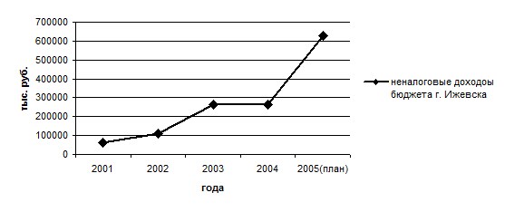 Таблица 1.6. Размер и структура неналоговых доходов бюджета г. Ижевска в 2001-2005 гг.