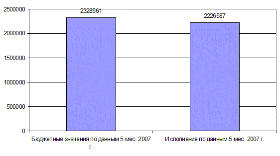 Как показывают данные анализа, за январь-май 2007 года бюджетные показатели по доходам бюджета г. Ижевска составили 2328561 тыс. р. При этом по доходам исполнение бюджета составило 95,62%, что несколько меньше показателей исполнения бюджета за 2006 год.