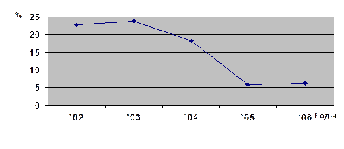 Рис.2.2. Динамика изменения дефицита в % к объему расходов