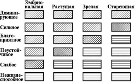 Анализ зрелости отрасли принято производить, относя ее к одному из четырех состояний развития: эмбриональному, растущему, зрелому и стареющему.