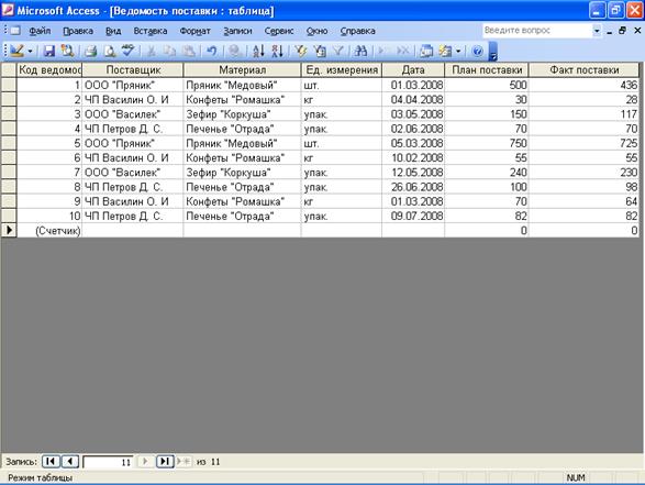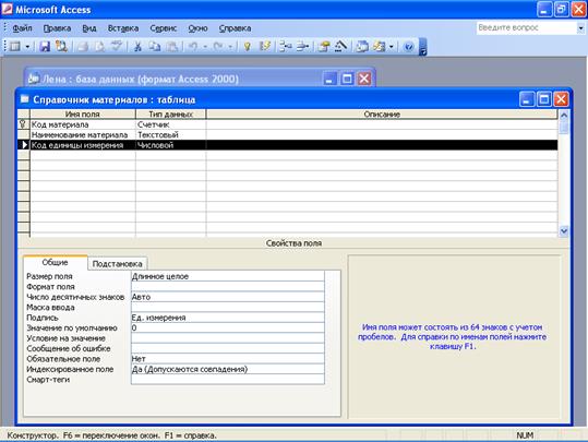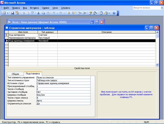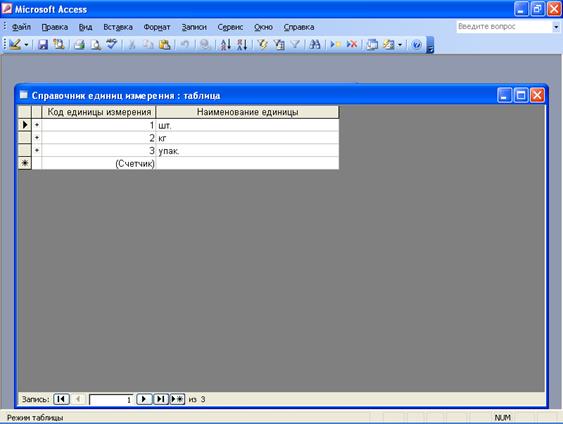 1. Создаем формы таблиц «Справочник поставщиков», «Справочник материалов», «Справочник единиц измерения».