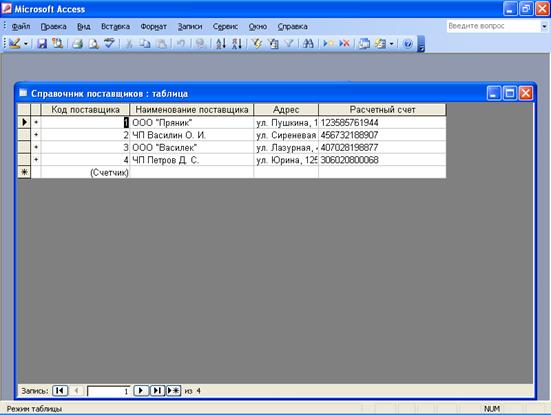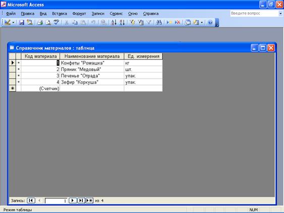 4.1 Для решения задачи используем 3 справочника: справочник поставщиков, справочник материалов, справочник единиц измерения.