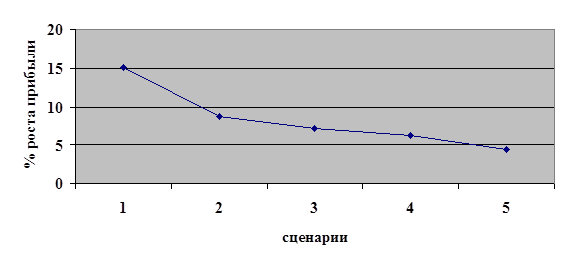 В результате расчета прироста прибыли, приносимого каждым сценарием, получены следующие данные ранжирования сценариев по их влиянию на прибыль холдинга (рис.3).