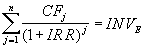 Полученное значение внутренней нормы доходности затем сравнивается со стоимостью собственного капитала, и проект принимается, если IRR > rE.