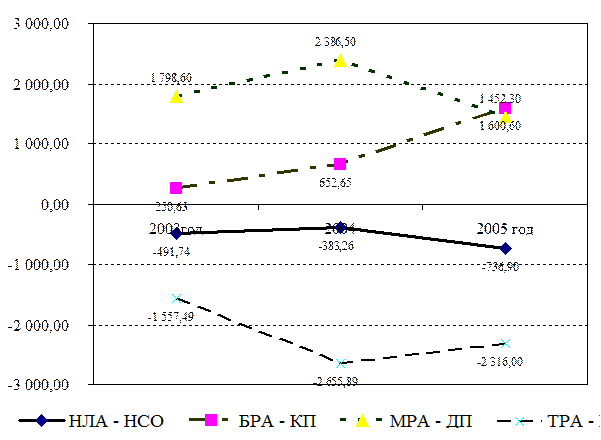 С учетом того, что минимально необходимый ежедневный уровень расхода средств в 2005 году составляет всего 34,5 тыс. рублей очевидны ориентиры повышения эффективности использования денежных средств предприятия и управления денежными потоками.