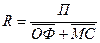 Кроме того, для характеристики эффективности производственной деятельности рассчитывается показатель рентабельности производства. При его расчете в качестве инвестированного капитала используется стоимость производственных фондов как сумма основных производственных фондов (ОФ) и материальных оборотных средств (МС):