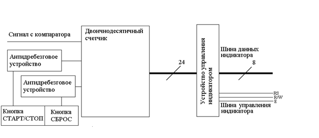 3. Управление устройством осуществляется посредством кнопок: старт/стоп – (начало счета/конец счета), сброс – (сброс счетчика).