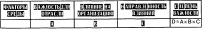 Первые пять факторов относят к внешней среде прямого воздействия, последние пять — к внешней среде косвенного воздействия.