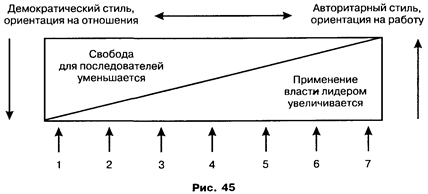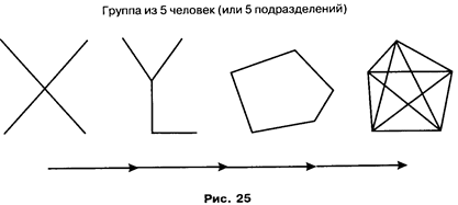 Другой пример. В большинстве случаев эффективность работы группы из 7 человек выше, чем группы, в которую входят 17 сотрудников. Многие психологи считают, что рабочая группа (руководитель плюс взаимодействующие между собой исполнители) с точки зрения эффективности и оперативности руководства, взаимодействия членов и экономии средств должна иметь численность не менее 5 и не более 9 человек (так называемый закон «7 плюс-минус 2»).