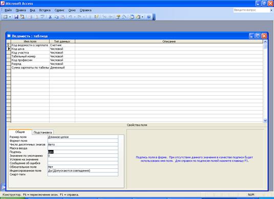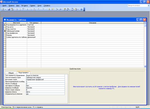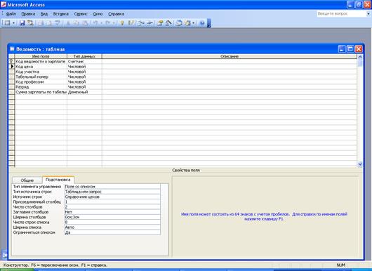 По окончании таблицы присвоим ей имя Ведомость и зададим ключевое поле.