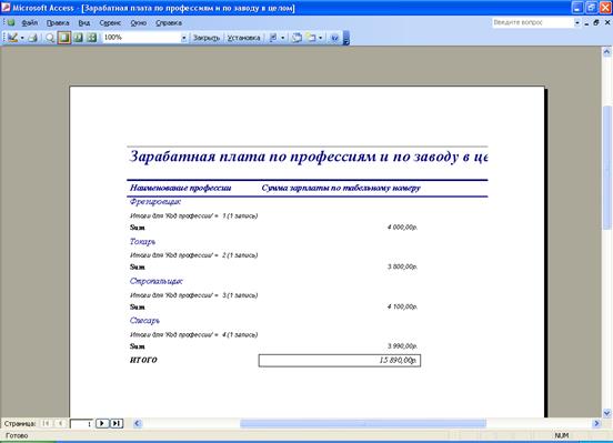 Задание. Выполнить расчет начисления заработной платы по профессиям и в целом по заводу. Расчет выполняется путем накопления начисленных сумм заработной платы для каждого работника.