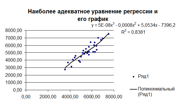 построена однофакторная нелинейная регрессионная модель. В результате на диаграмме