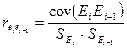 Для расчета автокорреляции используется стандартная функция КОРРЕЛ(С25-С33;С26-С34)= -0,5349 (Приложение 6).