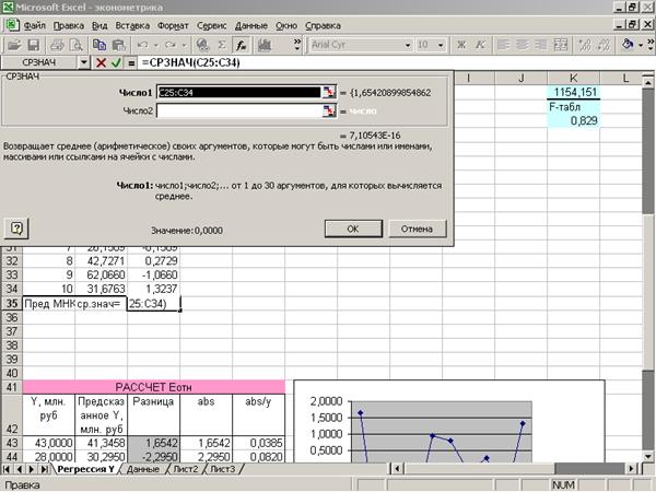 Для вычисления среднего значения остатка используем функцию СРЗНАЧ (Приложение 5).