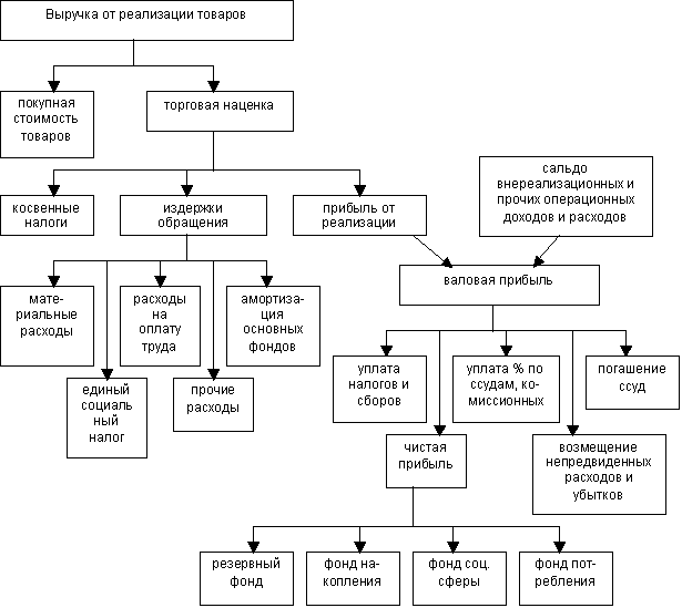 Наиболее наглядно схема распределения финансовых результатов торгового предприятия показана на рис. 1.4.