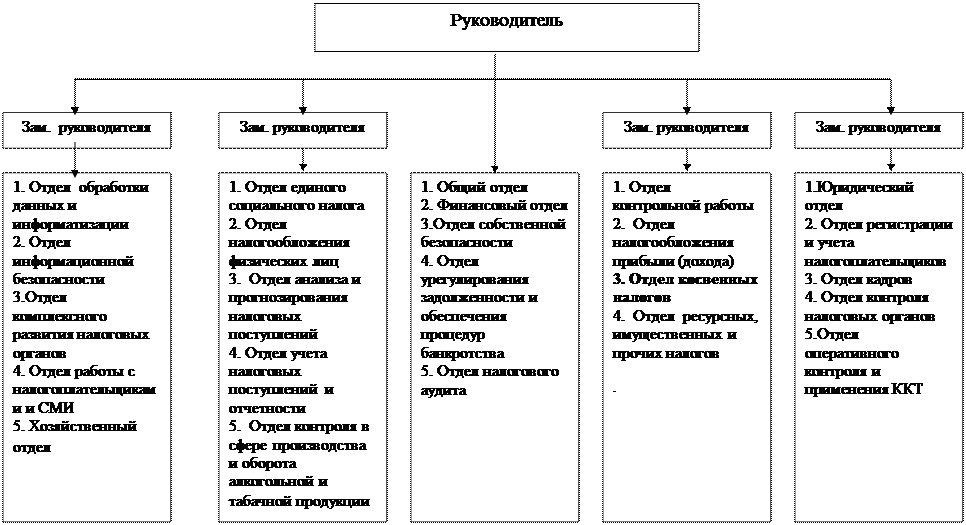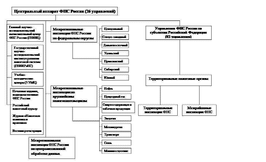 Управление налогообложением в РФ представляет собой систему, построенную по многоуровневому иерархическому принципу: инспекции федерального, республиканского, краевого и районного уровня. Центральными органами управления в системе налогообложения являются Минфин РФ и входящая в его состав Федеральная налоговая служба, а в системе таможенного регулирования – Минэкономразвития и торговли РФ и входящая в его состав Федеральная таможенная служба.