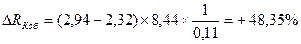 ΔR = -3,06 + 6,45 + (-8,18) = – 4,79% |