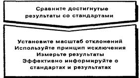 В процедуре контроля есть три четко различимых этапа: выработка стандартов и критериев, сопоставление с ними реальных результатов и принятие необходимых корректирующих действий. На каждом этапе реализуется комплекс различных мер[23].