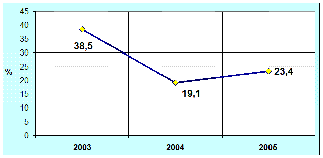 Составная часть кризиса инвестиций – кризис государственных инвестиций. За 1993 – 2004 гг. доля государства в инвестициях в основной капитал снизилась с 50,8 до 19,8%. В определенной степени эта тенденция закономерна. Ведь Россия переходит от плановой экономики к рыночной. Но государство, уходя из инвестиционного процесса, по нашему мнению, перешагнуло ту черту, за которой в рыночной экономике возникает дефицит государственных инвестиций, тормозящий оказание услуг обществу, рост производительности труда и эффективности бизнеса, что негативно влияет на другие аспекты общественной жизни. Принимая форму отложенных или отклоненных проектов, этот дефицит вызывает, в частности, перегрузку инфраструктуры, а значит, и ускоренную ее деградацию. Государство, отказываясь выполнить свою часть работы по поддержанию инфраструктуры в рабочем состоянии, перекладывает на будущие поколения тяжкое фискальное бремя.
