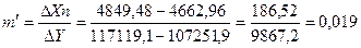 Данное значение превосходит существующее на 5188,6 млн. р., т. е. при увеличении государственного финансирования капитальных вложений на 1000 млн. р., значение валовых инвестиций в основные фонды в Удмуртии вырастет на 5188,6 млн. р.