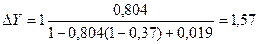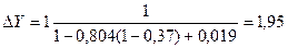 Оценим степень увеличения валовых капитальных вложений при увеличении государственных инвестиций в основные фонды в Удмуртской Республике на 1000 млн. р. Получим: