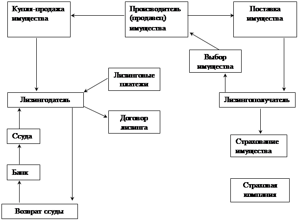 На основании договора финансовой аренды (лизинга) лизингополучатель вносит на расчетный счет ЗАО «УЛК» авансовый платеж. Далее на основании решения Экспертного Совета ЗАО «УЛК» заключает кредитный договор с УГФПМП или кредитными учреждениями (в частности с Удмуртским ОСБ №8618), в котором указывается целевое назначение кредита –– приобретение конкретного имущества для передачи в лизинг предприятию (предпринимателю). ЗАО «УЛК» на средства авансового платежа и привлеченного кредита приобретает имущество и передает его по акту приема-передачи лизингополучателю.