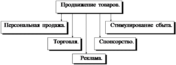Продвижение товара на рынок имеет четыре составляющие: реклама, стимулирование сбыта, личные продажи и пропаганда.