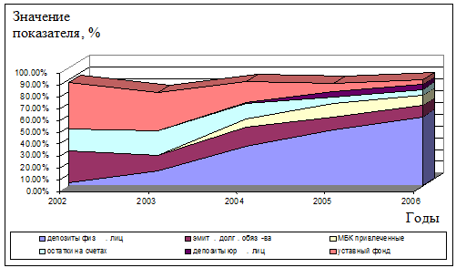 Рис. 1.10 Динамика структуры ресурсной базы ОАО «ИжЛадабанк»