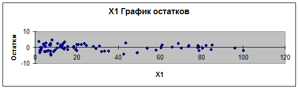 Графики остатков (зависимость еi от хi) строятся инструментом Регрессия, так как поставлен флажок График остатков (рис. 1, 2, 3, 4). График остатков (еi от у) построим с помощью Мастера диаграмм Excel (рис. 5).