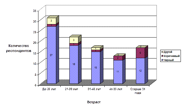 Из таблицы 2.8. видно, что большинство потребителей предпочитает обувь черного цвета.