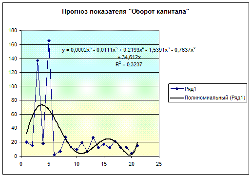 С помощью Мастера диаграмм в Excel для фактора оборот капитала и использование капитала подберём модель тренда (рис.1.11, 1.12):
