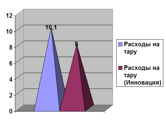 Рис.2.4. Показатель расходов на тару на торгово-розничном предприятии «Лиза» сейчас и после предложенных инноваций