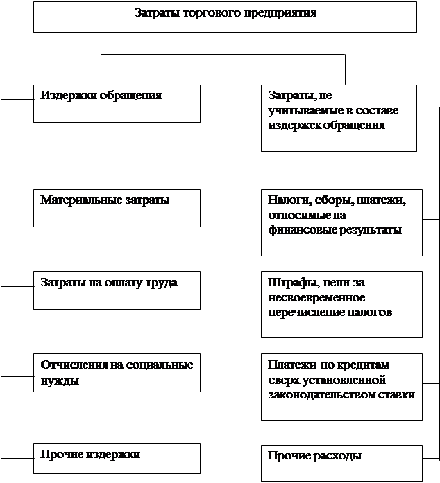 По экономическому содержанию не все затраты торгового предприятия могут быть отнесены к издержкам обращения. Так, расходы магазина по уплате штрафов, пени, кредитов сверх ставки, обязательные платежи во внебюджетные фонды социального страхования, а также убытки, произошедшие по случайным причинам (пожары, стихийные бедствия) и не обусловленные торговым процессом, к издержкам обращения не относятся и оплачиваются предприятием за счет чистой прибыли. Затраты подразделений неторговой деятельности, находящиеся в ведении торговых предприятий, также не учитываются в издержках обращения.