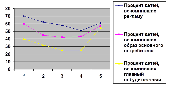 На рис. 1 приводятся результаты изменения реакции детей на проводимую рекламную кампанию прохладительного напитка определенной марки [5].