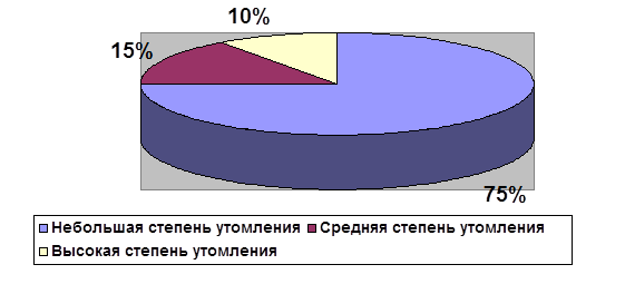 И, наконец, 4 человека (10%) более других устают. Их степень утомления высока.