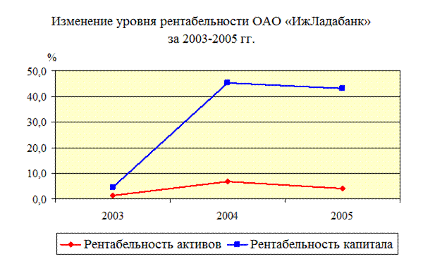 § банк является высокорентабельной организацией, имеет высокую отдачу от инвестиций, направленных на обеспечение его деятельности, коэффициенты рентабельности активов на 01.01.2006 – 4,1%, коэффициент рентабельности капитала – 43,2%;