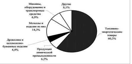 Рост количественных показателей российского экспорта сопровождался дальнейшим усилением топливно-сырьевой ориентации страны. Так, в товарной структуре экспорта в январе-ноябре 2005 г., по данным ГТК России, доля топливно-энергетических товаров возросла до 60,2% (рост по сравнению с январем-ноябрем 2004 г. на 3,5%).
