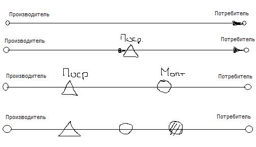 Каналы распределения могут быть трех видов: прямые, косвенные и смешанные. Прямые каналы связаны с перемещение товаров и услуг без участия посреднеческих организций. Они чаще устанавливаются между изготовителями и потребителями, которые сами контролируют свою маркетинговую программу и располагают ограниченными целевыми рынками. Косвенные каналы связаны с перемещением товаров и услуг сначала от изготовителя к незнакомому участнику-посреднику, а затем от него – к потребителю. Такие каналы обычно привлекают предприятия и фирмы, которые с целью увеличения своих рынков и объемов сбыта согласны отказаться от многих сбытовых функций и расходов и соответственно от определенной доли контроля над сбытом, а также готовы несколько ослабить контакты с потребителями. Смешанные каналы объединяют черты первых двух каналов товародвижения. Так, предприятия машиностроительного комплекса мало используют преимущества прямых контактов с поставщиками, они реализуют продукцию через систему посредников. |