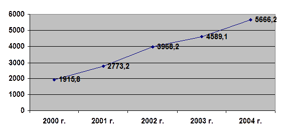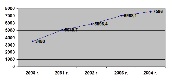 Таким образом, за период с 2000 г. по 2004 г. среднемесячная заработная плата на одного работника увеличилась: