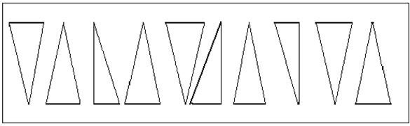 3-й уровень - при срисовывании допускаются грубые искажения узора, которые повторяются и при самостоятельном его продолжении; заданная закономерность в расположении линий нарушена: пропущены отдельные элементы узора (например, одна из горизонтальных линий, соединяющих вершины, сглажены или совсем нивелированы различия в высоте вершин).