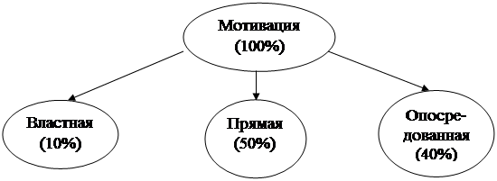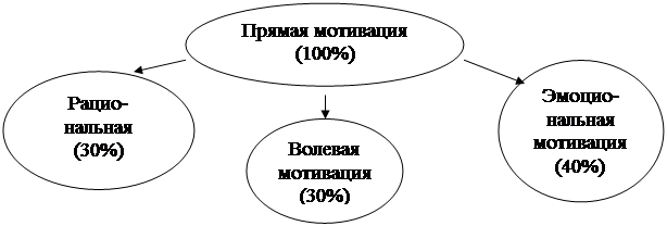 Если взять прямую мотивацию за 100%, то деление ее на подвиды (в процентном соотношении) будет выглядеть следующим образом (Рис. 3).