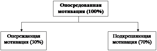 Опосредованная мотивация подразделяется на два подвида – это опережающая и подкрепляющая мотивация. Процентное соотношение этих подвидов, как мне кажется, может быть следующим (Рис. 3):
