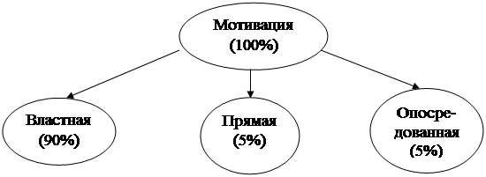 Если опосредованную мотивацию взять за 100%, то процентное соотношение между ее видами будет выглядеть так: