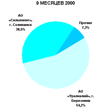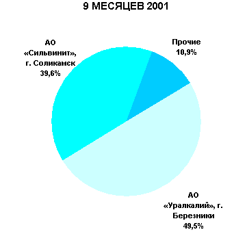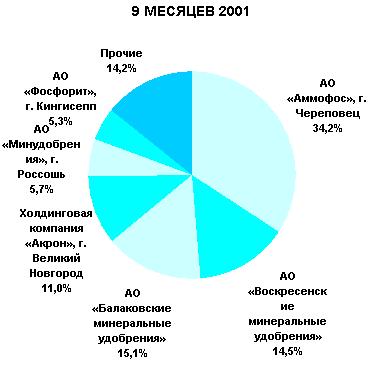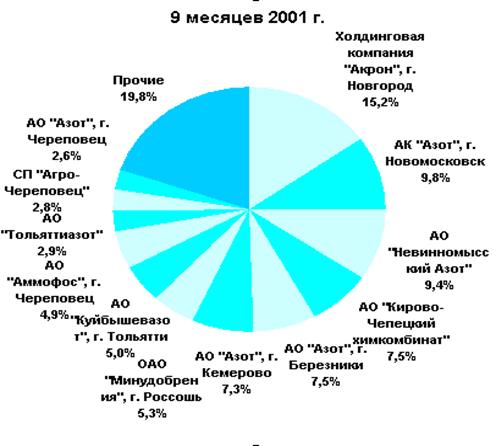 Рис. 1 Структура рынка минеральных удобрений за 9 месяцев 2001 г.