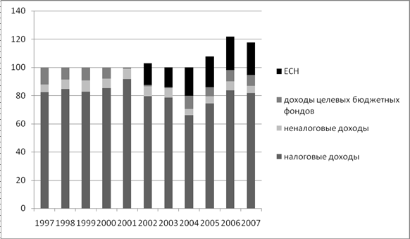 Доходы федерального бюджета как в 2009-2011 гг., так и в долгосрочной перспективе в долях ВВП будут сокращаться. Основной причиной этому послужит сокращение доли нефтегазового сектора в ВВП. Доходы от нефти и газа в 2008 году были на рекордном для последних лет уровне - 11,2% ВВП. Но уже в 2009 году нефтегазовые доходы снизились до 9,1% ВВП, в 2010 году планируются до 7,7% ВВП, в 2011 году - до 6,9% ВВП. Таким образом, за три года нефтегазовые доходы, как доля ВВП, сократятся почти на 40%. По мнению министра финансов РФ А.Кудрина, на 80% снижение нефтегазовых доходов обусловлено уменьшением доли этого сектора в структуре ВВП, а оставшиеся 20% - снижением нефтяных цен. При этом даже если цена будет на уровне $150 за баррель, этот тренд практически не изменится. Ключевым фактором оказывается низкие темпы прироста добычи нефти по сравнению с приростом ВВП.