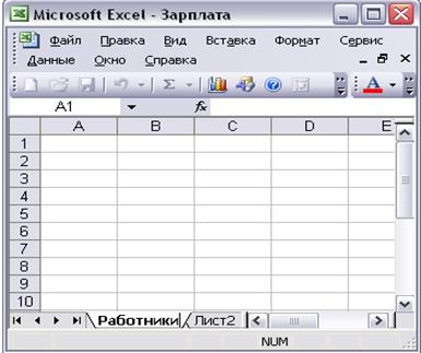 1. При запуске Excel открывается окно в котором будем создавать таблицу.